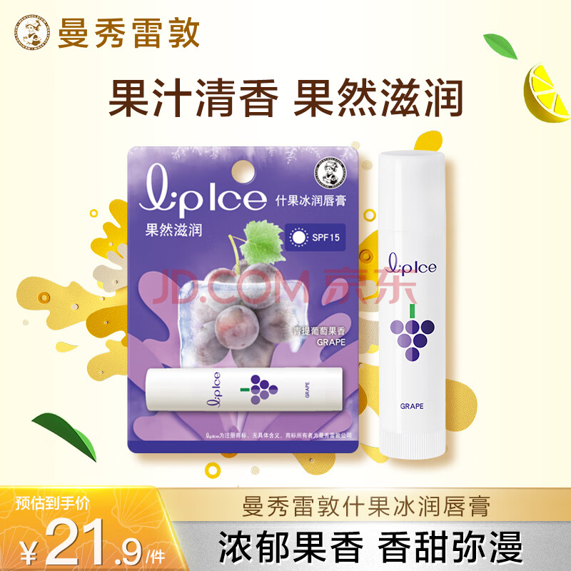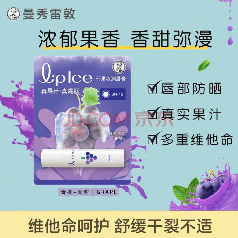 商品相册:曼秀雷敦润唇膏SPF15防晒男女补水保湿防干裂什果冰青提葡萄果香3.5g第