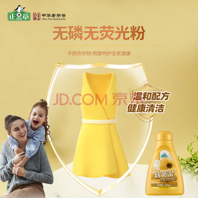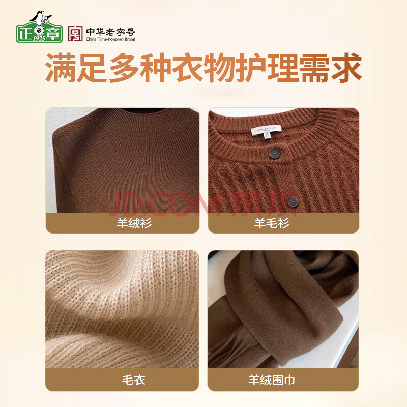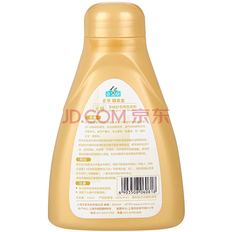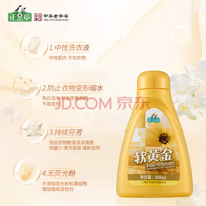 商品相册:正章 软黄金350ml羊毛羊绒衫清洁剂洗涤剂洗衣液真丝绒呢大衣无磷第1张/共8
