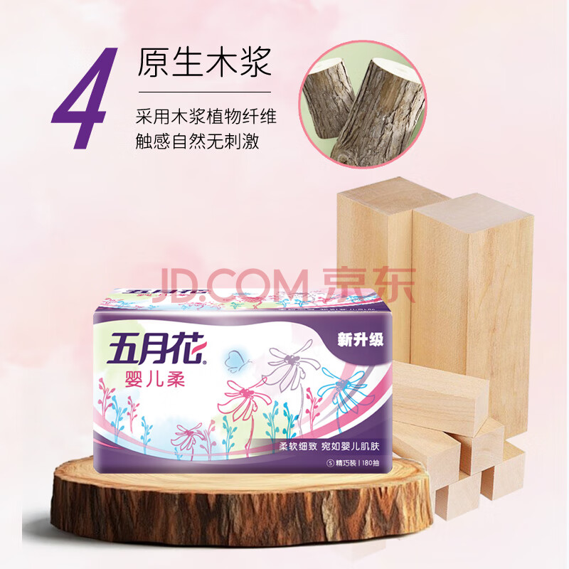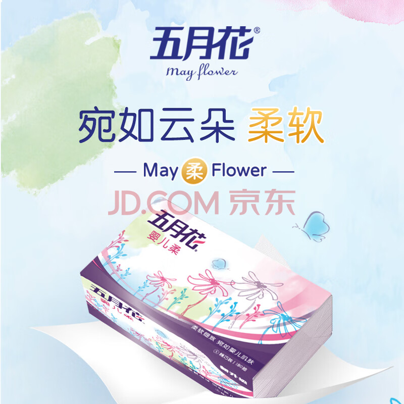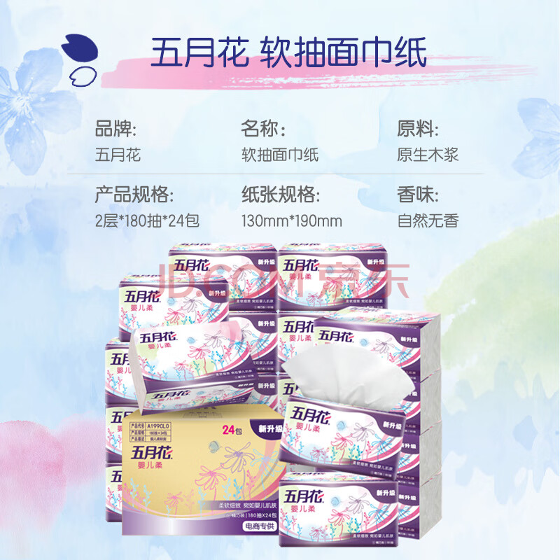 商品相册:五月花(May Flower)抽纸 2层180抽*24包S码软抽 柔软亲肤面巾纸 整箱装第