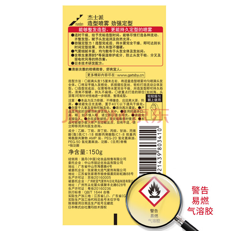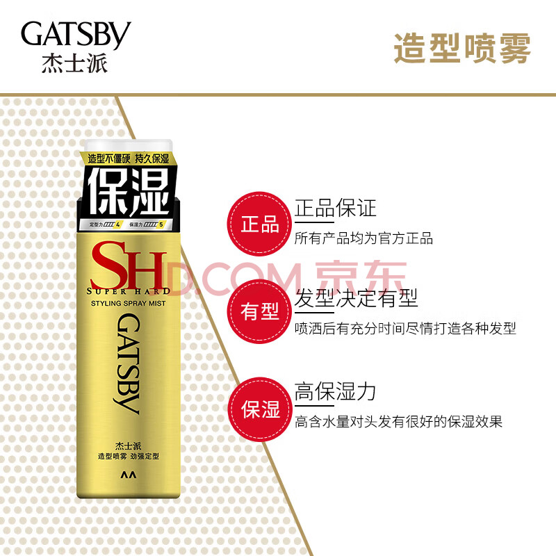 商品相册:杰士派(GATSBY)造型喷雾劲强定型造型五颗星150g 保湿 新老包装随机发货第
