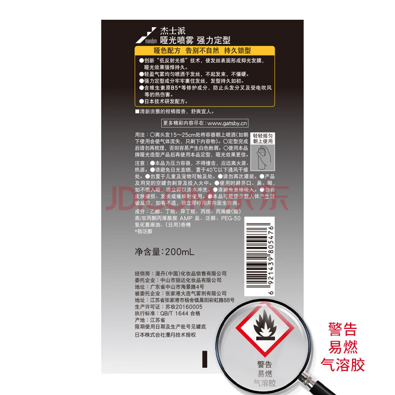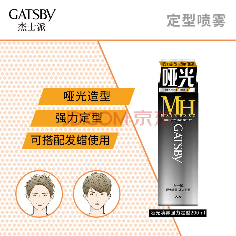 商品相册:杰士派(GATSBY)男士哑光喷雾强力定型四颗星200ml 自然新老包装随机发货第