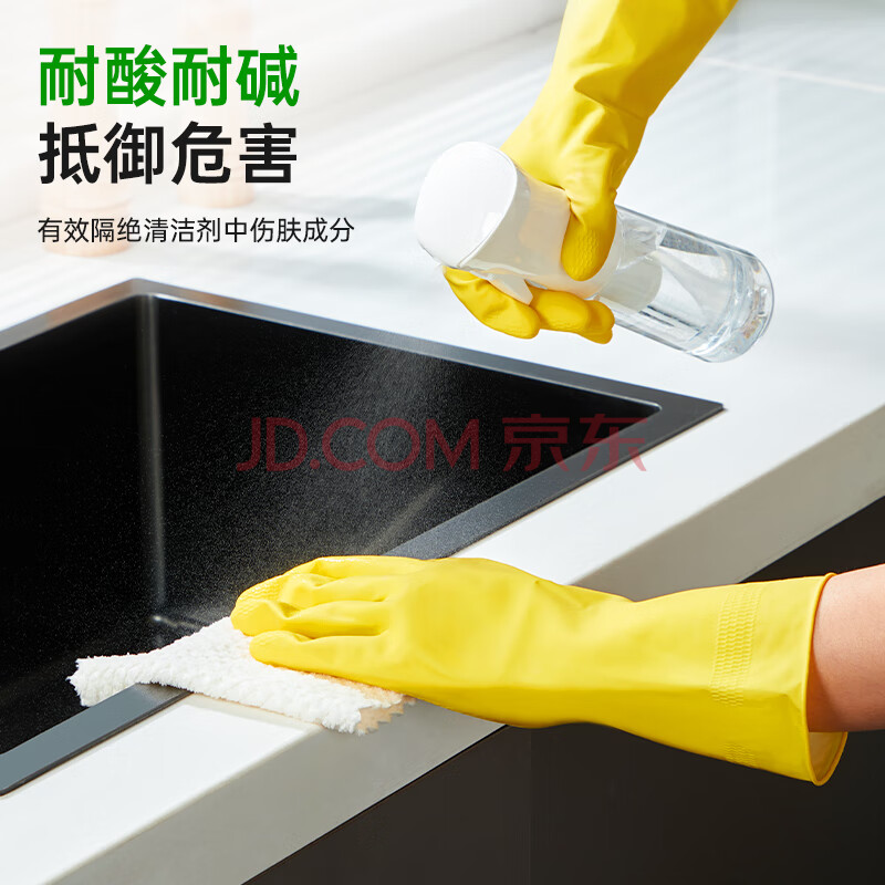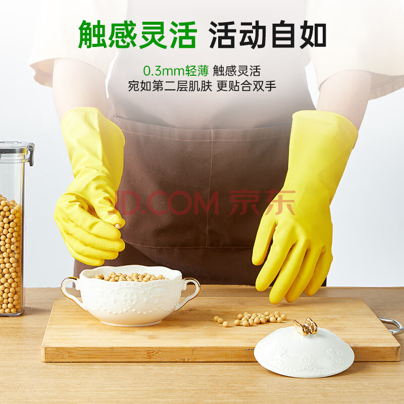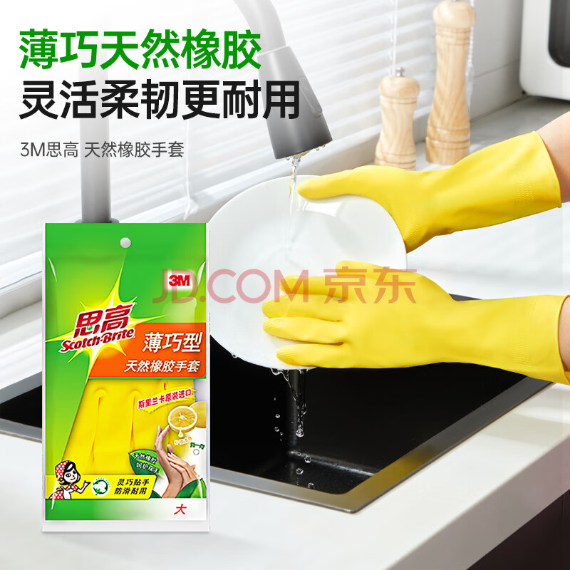 商品相册:3M橡胶手套 1双装大号薄巧型防水防滑家务清洁手套 厨房洗衣 柠檬黄第