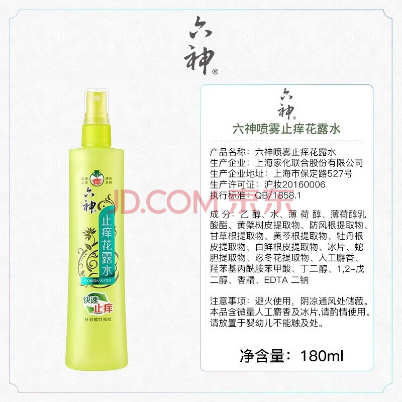商品相册:六神【止痒喷雾】三重草本花露水180ml*1(舒缓 清爽 新老包装随发)第