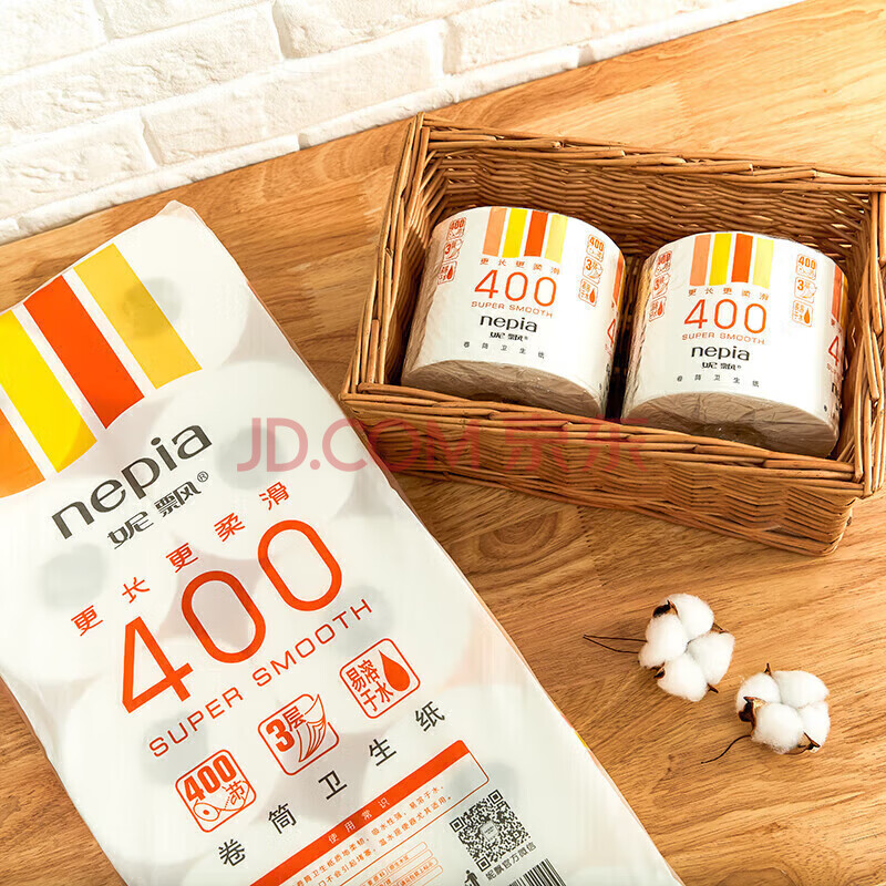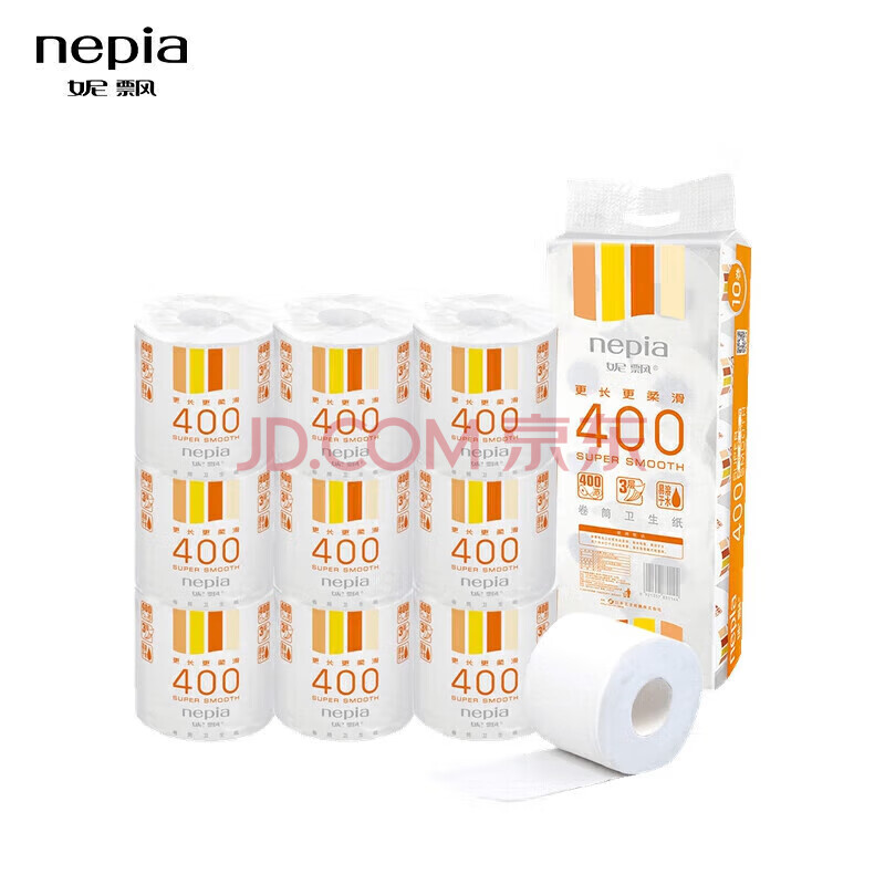 商品相册:妮飘(Nepia)有芯卷纸3层400节*10卷190g家用厕纸无香卫生纸巾卷筒纸可溶于水第