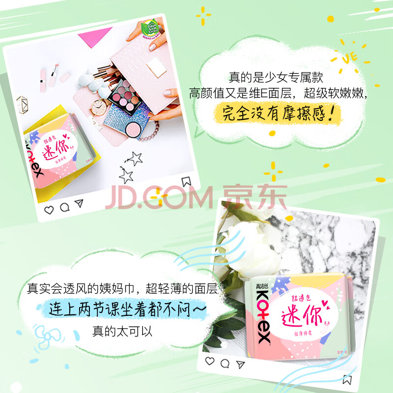商品相册:高洁丝【柔滑呵护】少女肌护垫190mm10片*6包日用迷你卫生巾京东自营第
