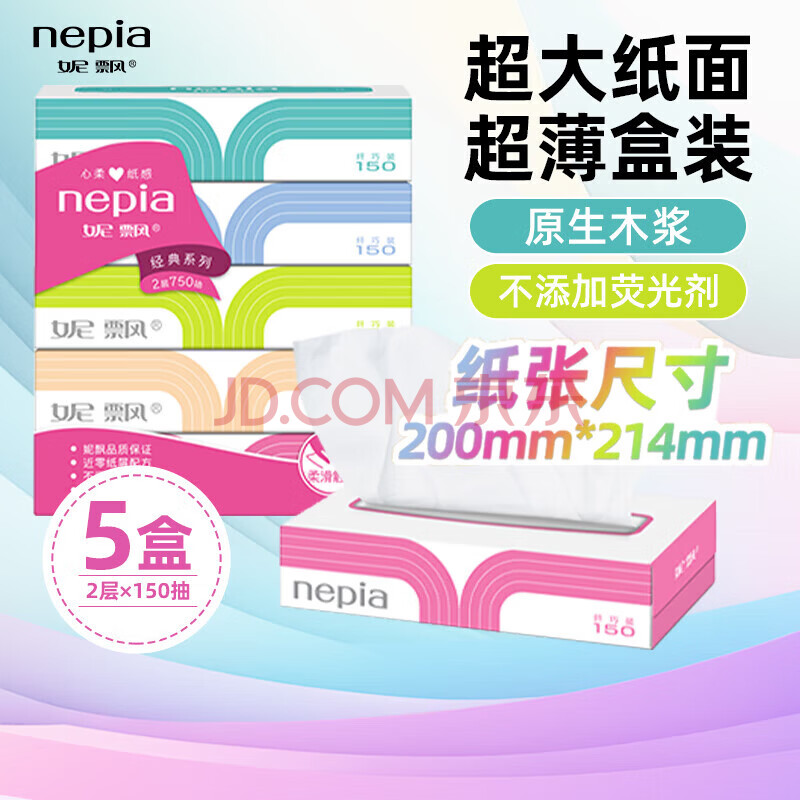 商品相册:妮飘(Nepia)经典系列抽纸2层200抽*3盒大容量抽取式盒装餐巾纸柔韧面巾纸面纸第