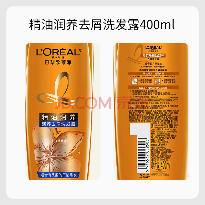 商品相册:欧莱雅精油润养洗发水去屑洗发露400ml(新老包装随机发货)第
