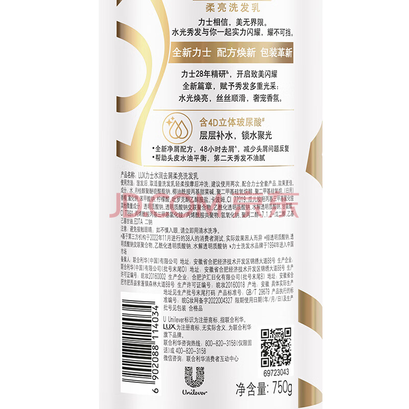 商品相册:力士(LUX)【柔顺留香】玻尿酸洗发水750g 干枯毛躁发质 柔顺留香第
