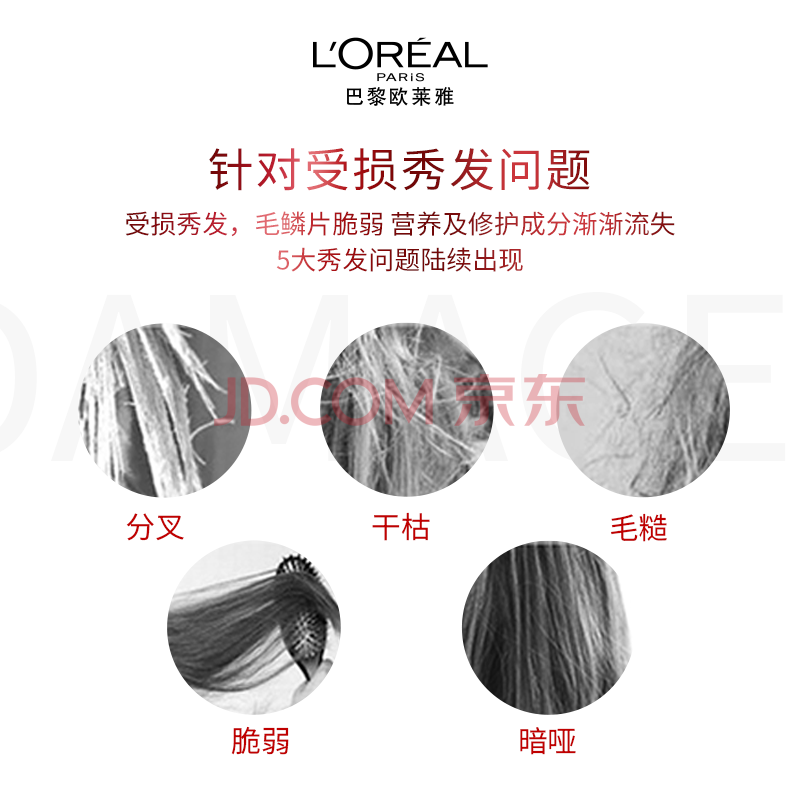 商品相册:欧莱雅多效修护洗发水去屑无硅油洗发露400ml(新老包装随机发货)第