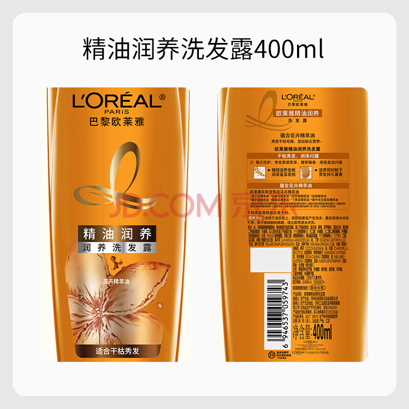 商品相册:欧莱雅精油润养洗发水柔顺顺滑洗发露400ml(新老包装随机发货)第