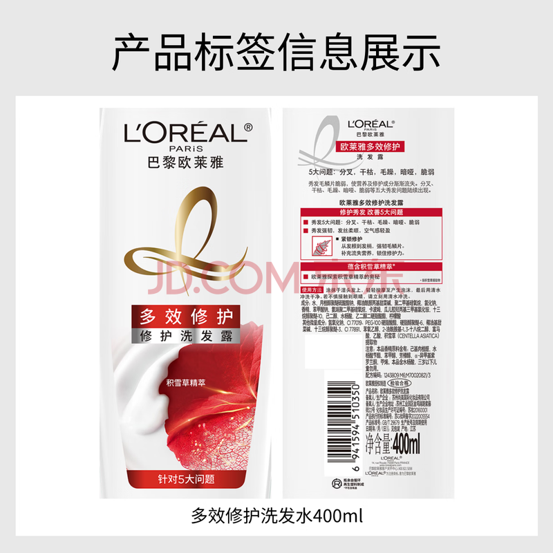 商品相册:欧莱雅多效修护洗发水柔顺洗发露400ml(新老包装随机发货)第