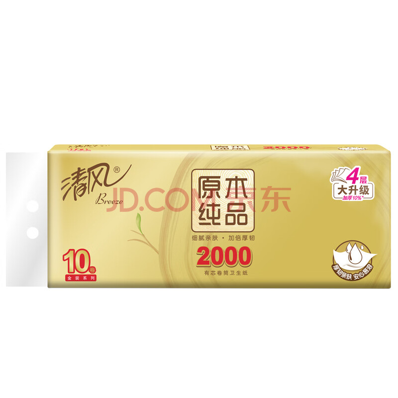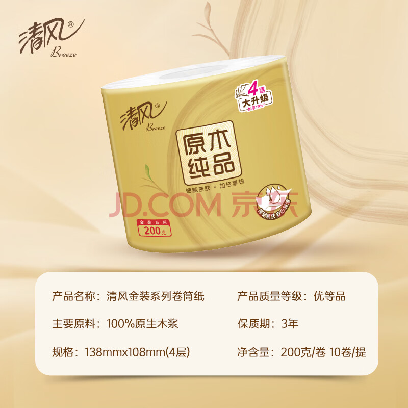 商品相册:清风有芯卷纸 原木金装4层 200克*10卷 卫生纸纸巾 厕纸 卷筒纸 单提第