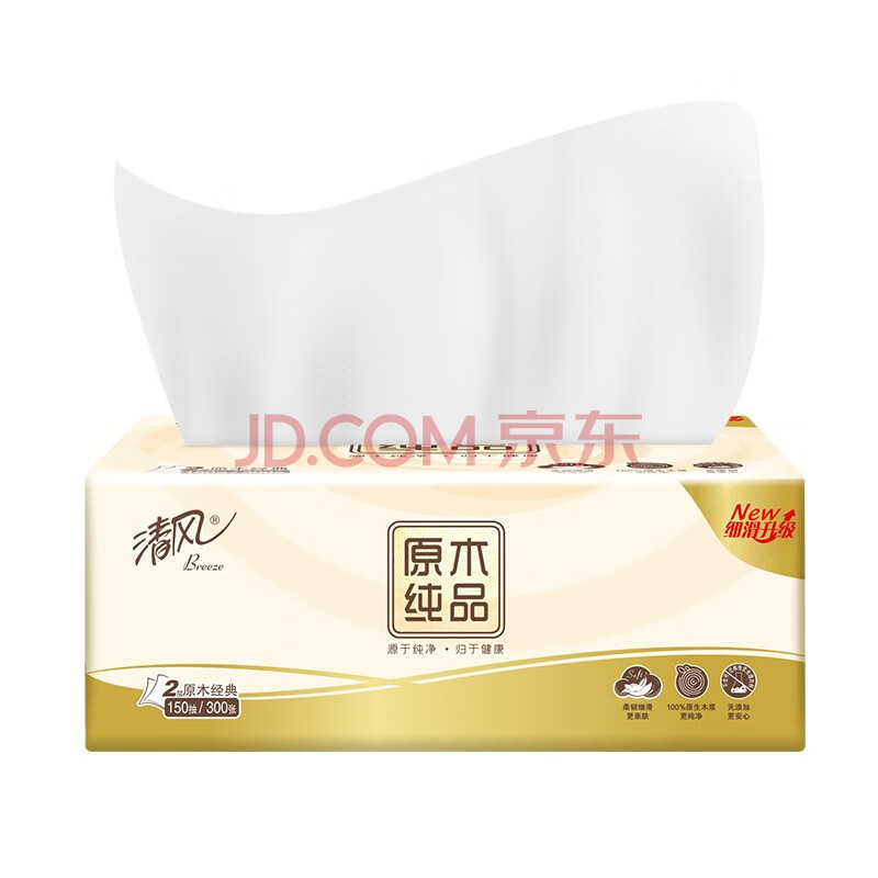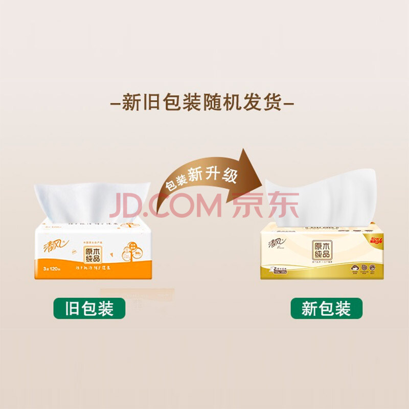 商品相册:清风抽纸 原木纯品2层150抽*6包S码 亲肤无刺激 卫生纸巾 餐巾纸第
