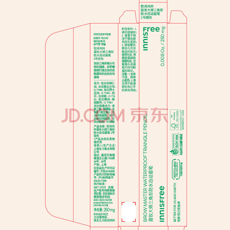 商品相册:悦诗风吟(innisfree)眉笔三角形2#棕色0.25g防水汗定型扁平笔头送女友礼物第