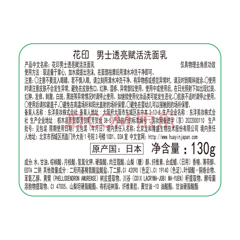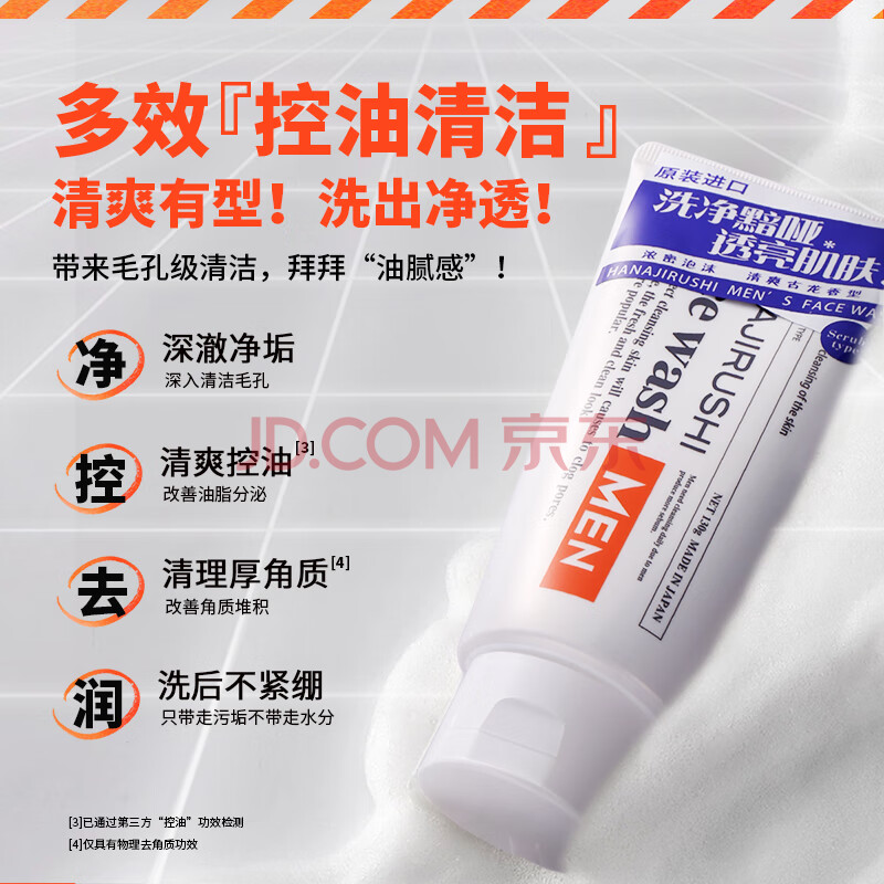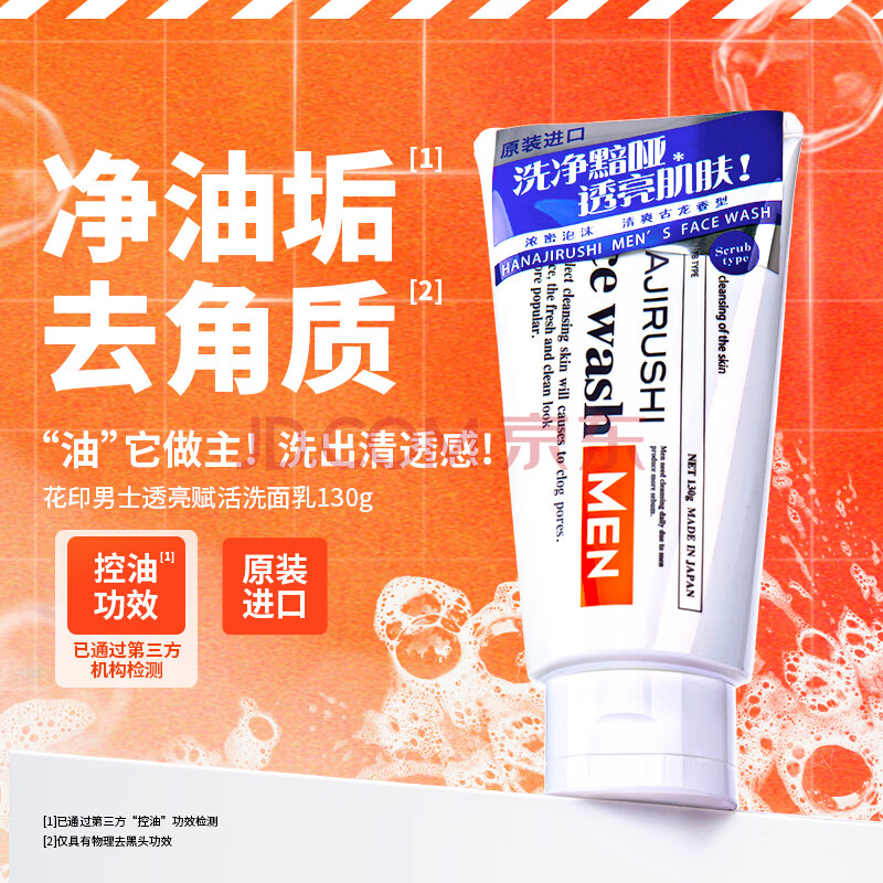 商品相册:花印男士透亮赋活洗面奶130g深澈清洁洗面奶男士洁面控油保湿第
