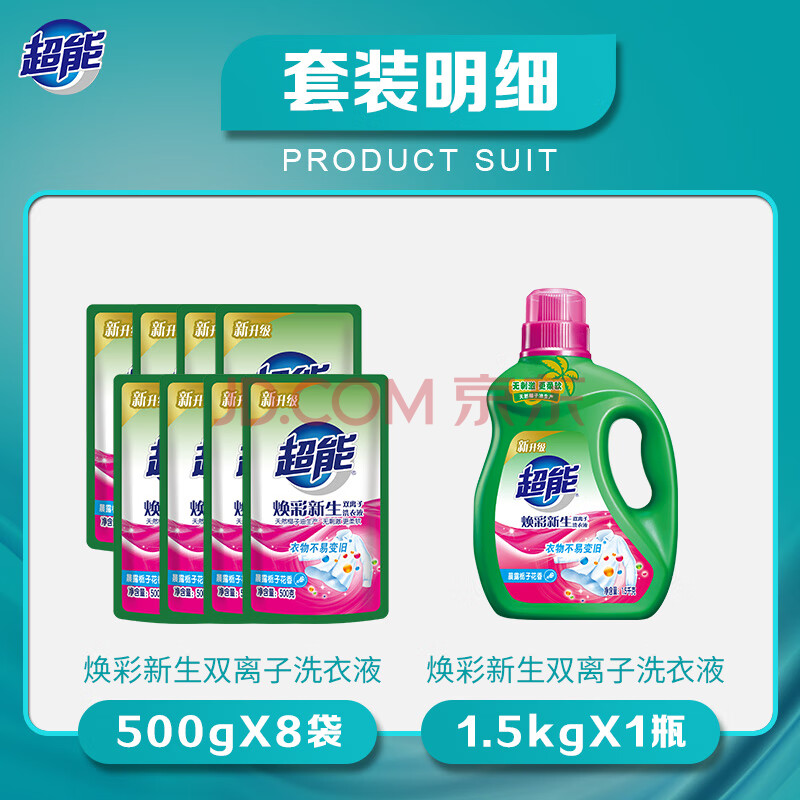 商品相册:超能 焕彩新生洗衣液 栀子花香 11斤整箱(1.5kg+500g*8) 天然椰油第