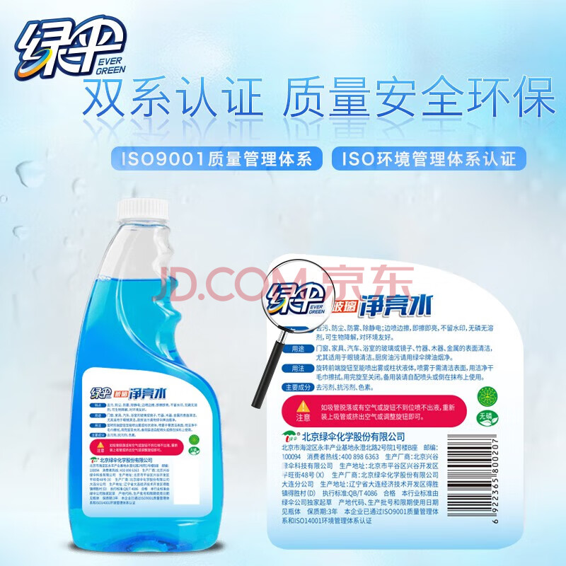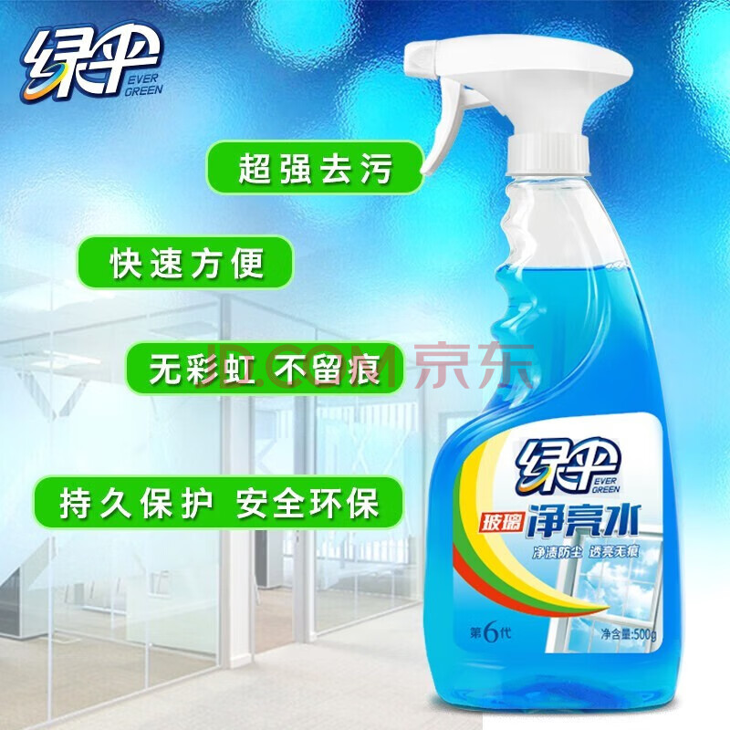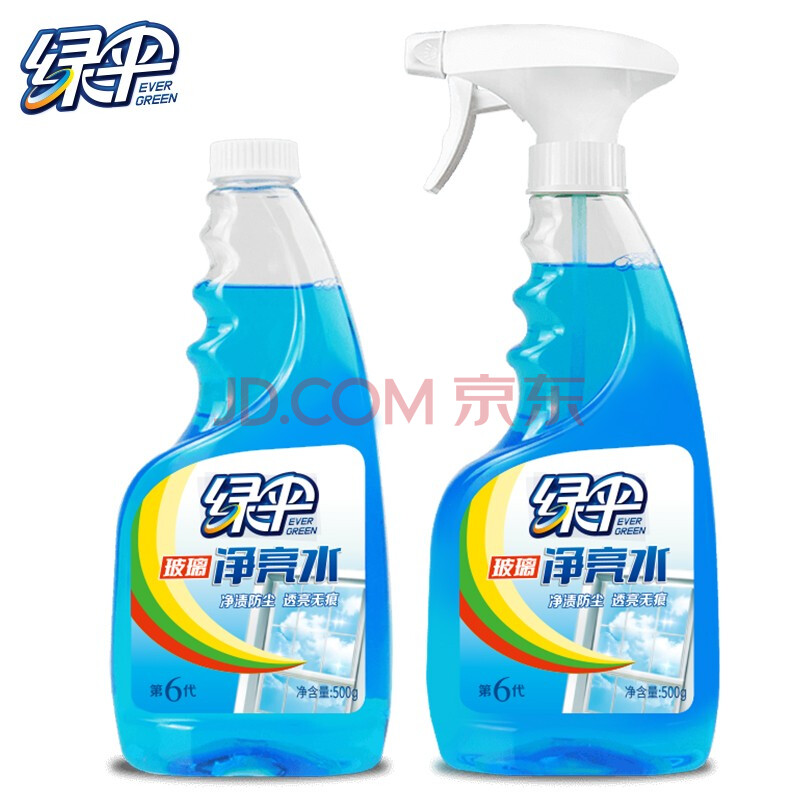 商品相册:绿伞玻璃净亮水 玻璃车窗清洗剂 不留水痕去污防尘500g*2瓶第