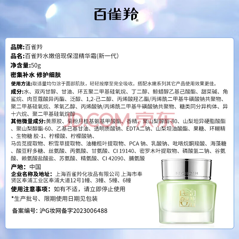 商品相册:百雀羚面霜水嫩倍现保湿精华霜50g补水滋润品质国货热门商品生日礼物第
