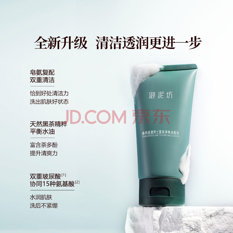 商品相册:御泥坊 男士春风抚面黑茶劲爽洁面乳100ml氨基酸洗面奶男保湿护肤品新年第