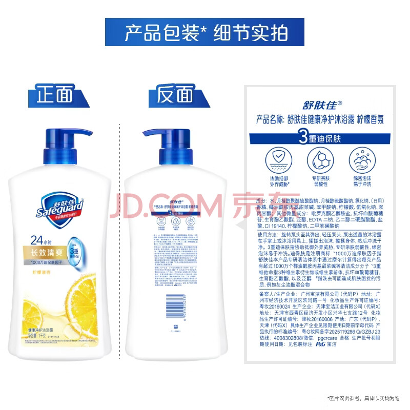 商品相册:舒肤佳健康净护沐浴露 柠檬香1kg 长效清爽 沐浴乳液 新旧包装随机第