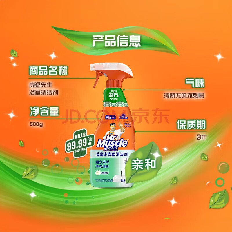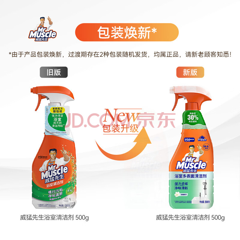 商品相册:威猛先生(Mr Muscle)浴室清洁剂 500g 去除水垢 皂垢 瓷砖清洁剂(新老包装随机发货)第