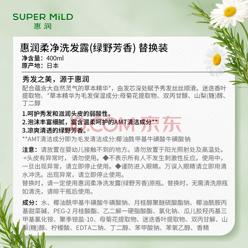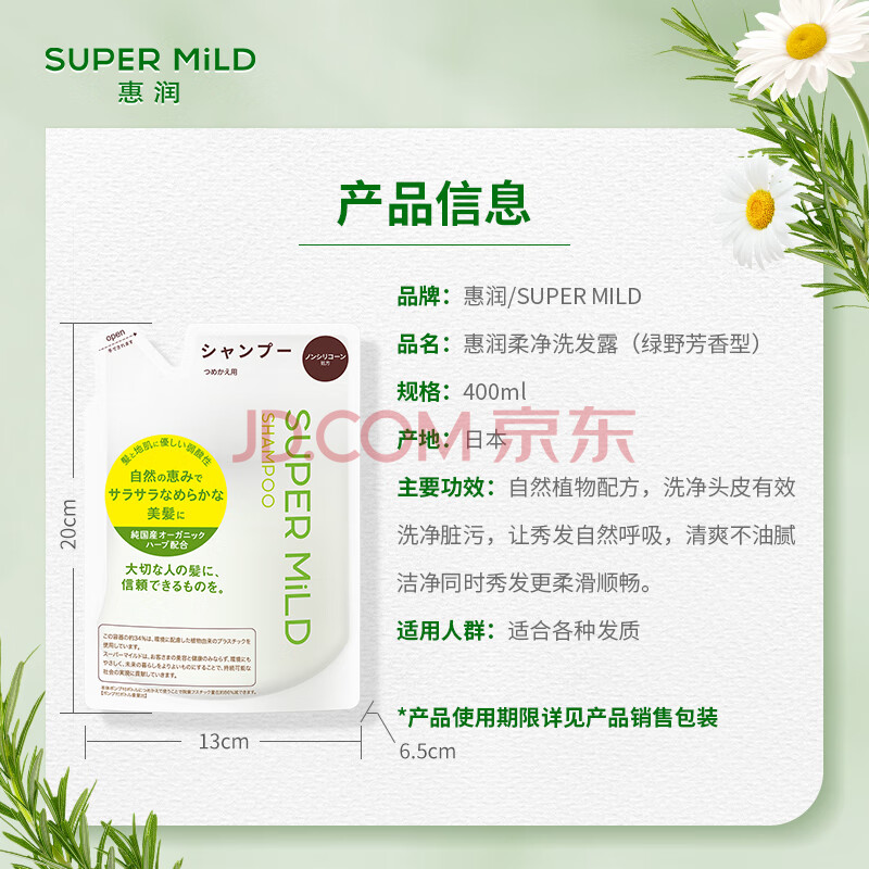 商品相册:惠润(SUPER MiLD)绿野洗发露替换装400ml 0硅油清爽蓬松洗发水京东自营第
