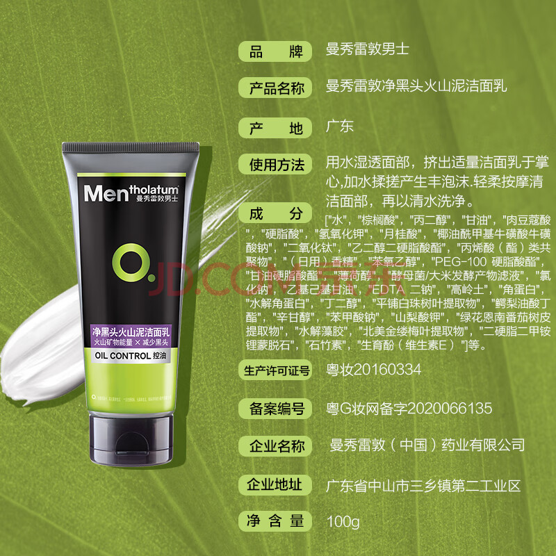 商品相册:曼秀雷敦男士去黑头火山泥洁面乳100g 收缩毛孔深层洁净 洗面奶男第