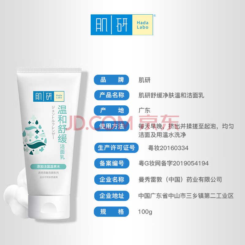 商品相册:肌研温和舒缓洁面乳100g 透明质酸保湿 舒缓不紧绷 洗面奶女京东自营第