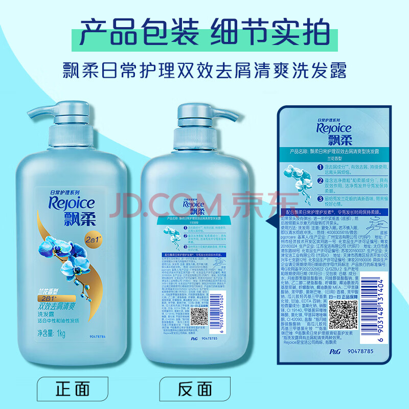 商品相册:飘柔日常护理家庭装去屑清爽洗发水男女士洗发露膏1KG去油第