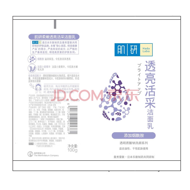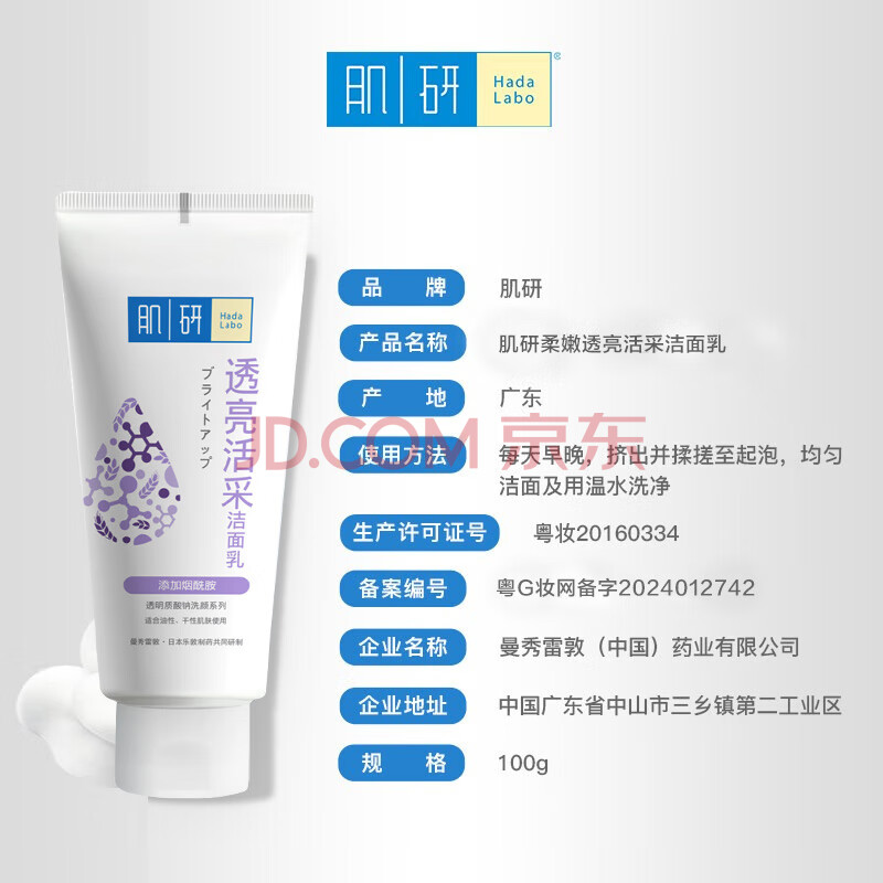 商品相册:肌研柔嫩保湿透亮洁面乳100g 温和软化角质 补水提亮保湿洗面奶女第