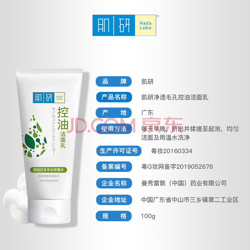 商品相册:肌研净透毛孔控油洗面奶100g 净化油性肌肤 控油去黑头洗面奶女第