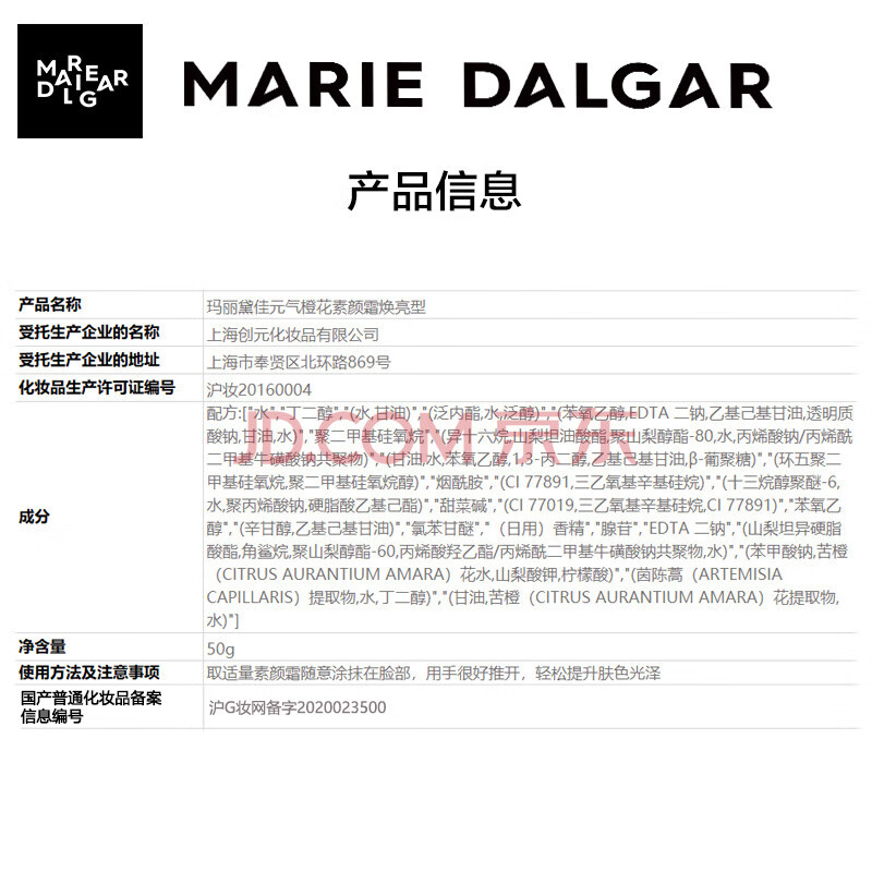 商品相册:玛丽黛佳经典款元气橙花素颜霜自然裸妆无需卸妆懒人面霜50g第1张/共6