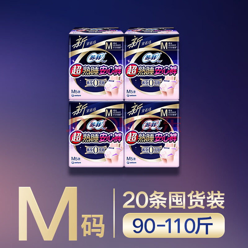 商品相册:苏菲超薄无痕0皮筋超熟睡安心裤M-5*4包安睡裤不移位卫生巾夜安裤自营第1张/共6