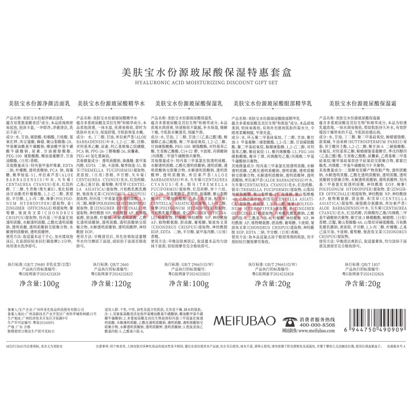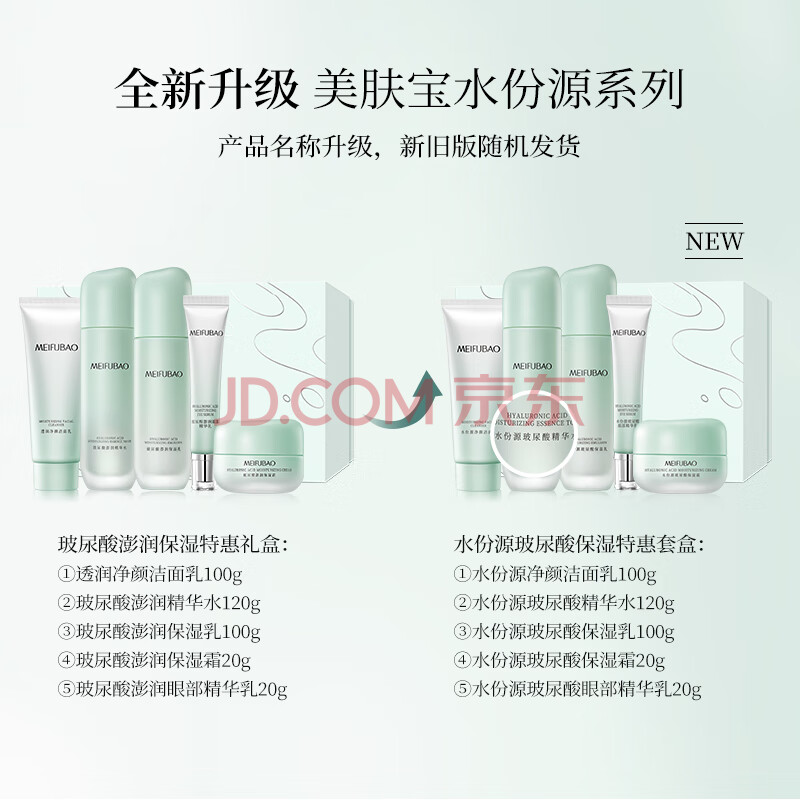 商品相册:美肤宝水份源玻尿酸保湿礼盒(洁水乳眼精华面霜)补水护肤品套装男女第