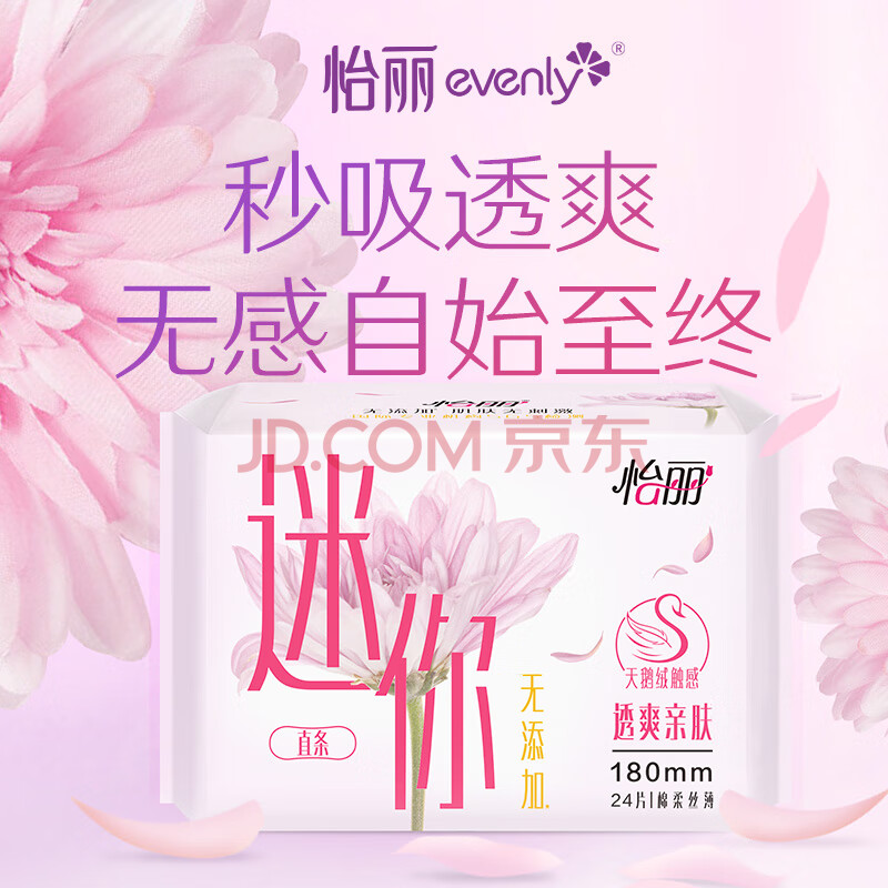 商品相册:怡丽迷你卫生巾超薄干爽透气直条无护翼日用护垫180mm24片京东自营第