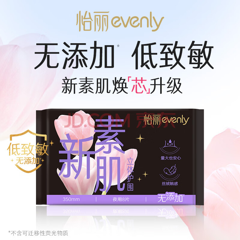 商品相册:怡丽立体护围卫生巾棉柔透气超长夜用350mm8片京东自营官方旗舰姨妈巾第