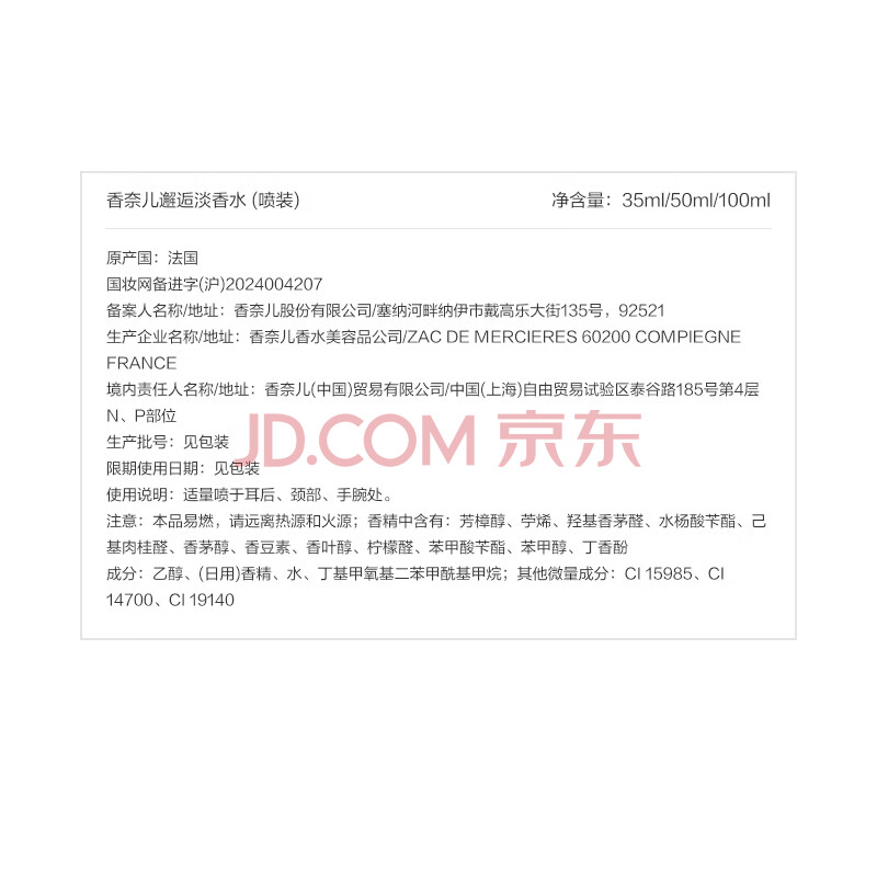 商品相册:香奈儿(Chanel)邂逅淡香水(喷装)50ml礼盒装黄邂逅清新花香调生日礼物送女友老婆第