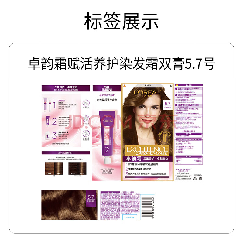 商品相册:欧莱雅卓韵霜特润双膏染发霜#5.7亚麻浅棕色 染发膏染发膏第
