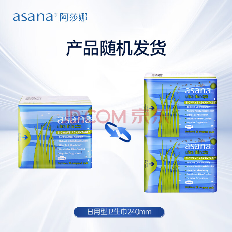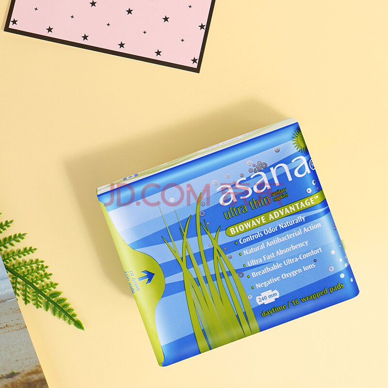 商品相册:阿莎娜(Asana)日用卫生巾240mm16片 绵柔触感亲肤透气超薄姨妈防侧漏加拿大品牌第
