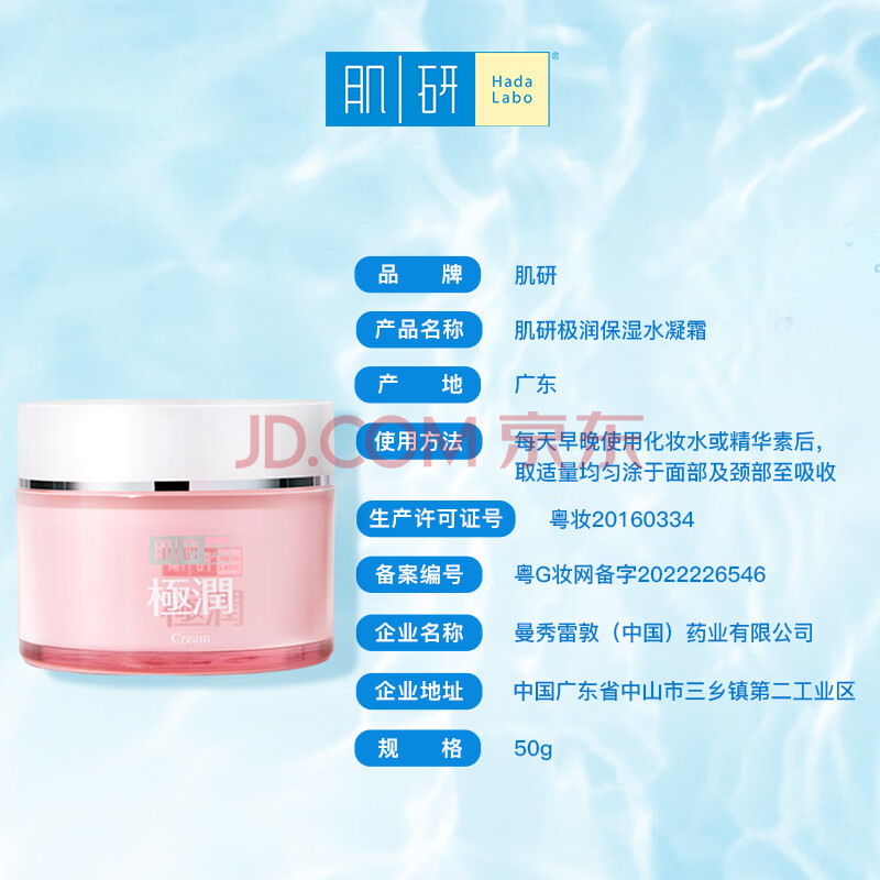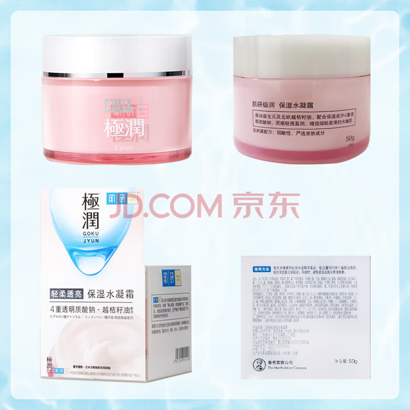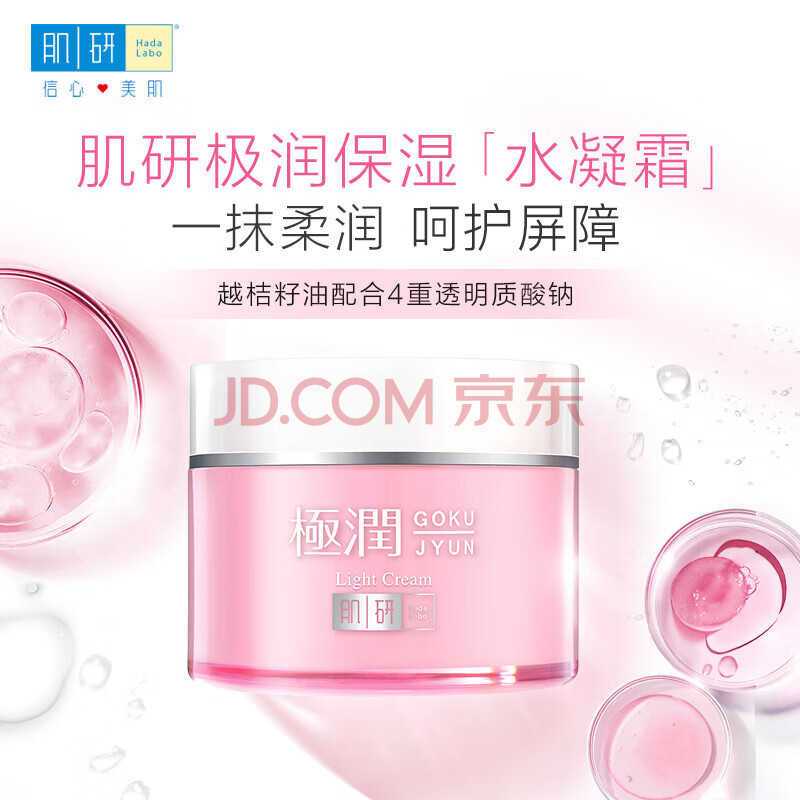 商品相册:肌研极润保湿水凝霜50g 面霜女补水保湿 樱花精华油提亮肤色 熬夜必备第