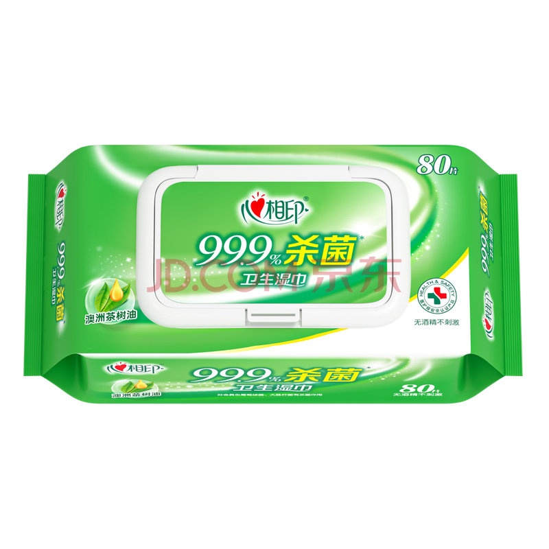 商品相册:心相印杀菌湿巾80片 99.9%杀菌卫生 带盖抽取 新老包装发第1张/共6