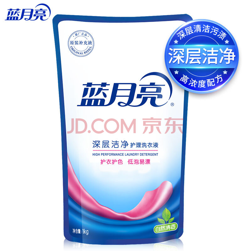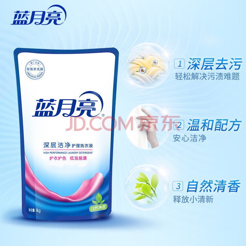 商品相册:蓝月亮 深层洁净洗衣液 自然清香 1kg袋装 补充装 高效除螨 强效去污第