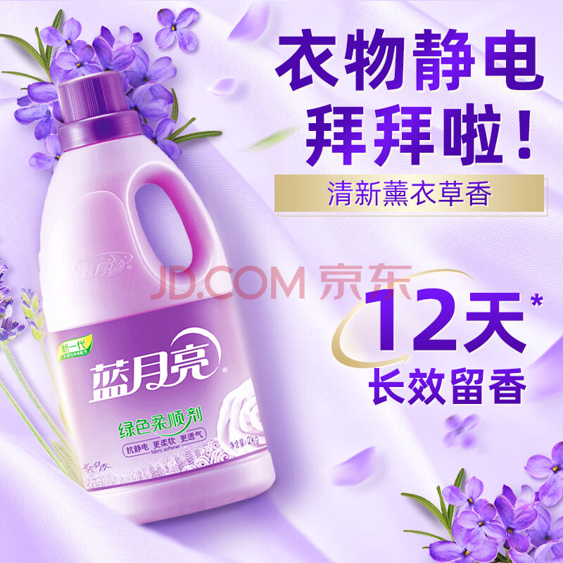 商品相册:蓝月亮衣物护理液柔顺剂 薰衣草2kg瓶 持久留香防静电 羊毛适用洗衣搭档第