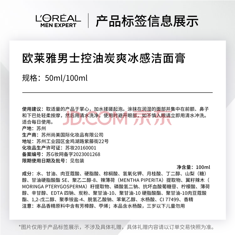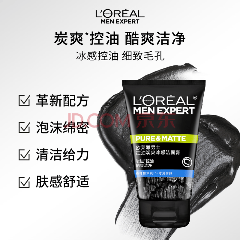 商品相册:欧莱雅男士专用控油炭爽洁面膏100ml洗面奶洁面膏去黑头护肤品第1张/共5