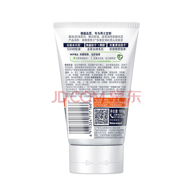 商品相册:妮维雅(NIVEA)男士升级【控油清洁】洁面100g洗面奶去油收毛孔青少年第