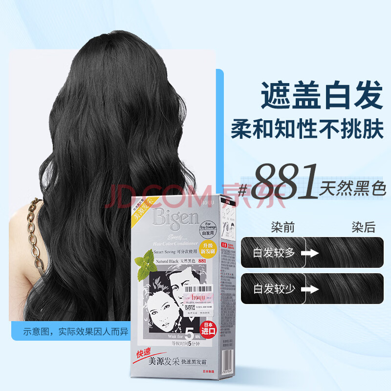 商品相册:Bigen美源发采快速黑发霜染发膏(天然黑 881)进口快速染发健康遮白第