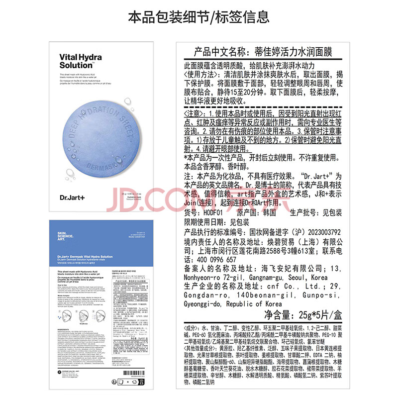 商品相册:蒂佳婷(Dr.Jart)【蓝丸1.0】蓝丸补水面膜5片 晒后修护保湿玻尿酸深补水 生日礼物第