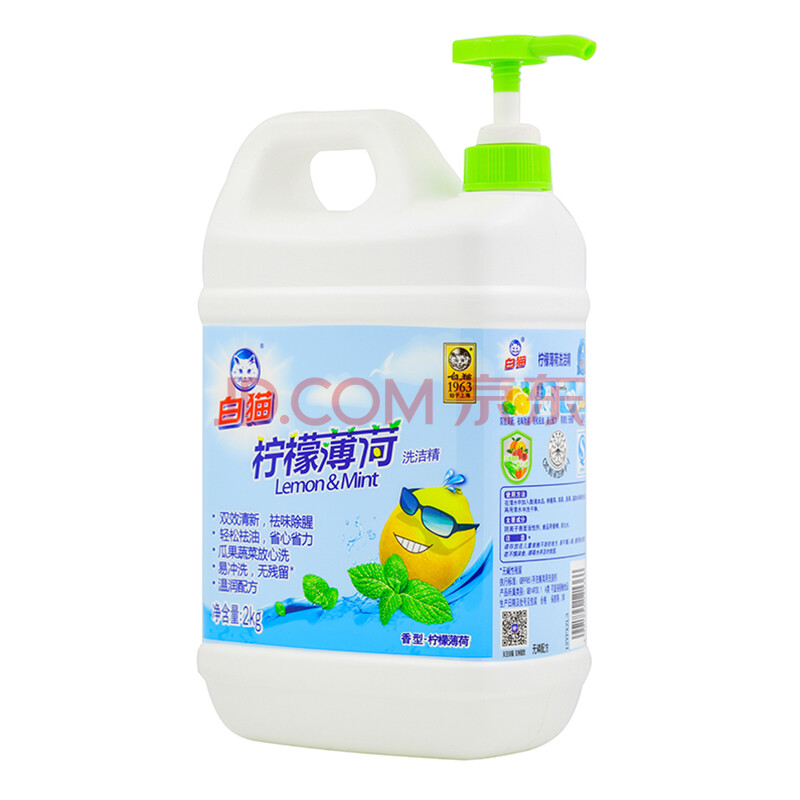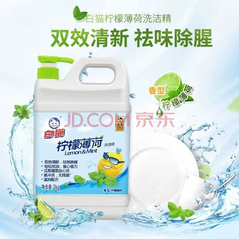 商品相册:白猫 柠檬薄荷洗洁精2kg A类食品用祛油除腥祛味青柠薄荷香 洗洁精第