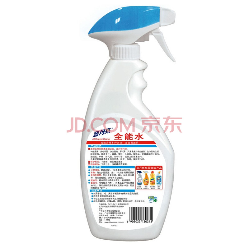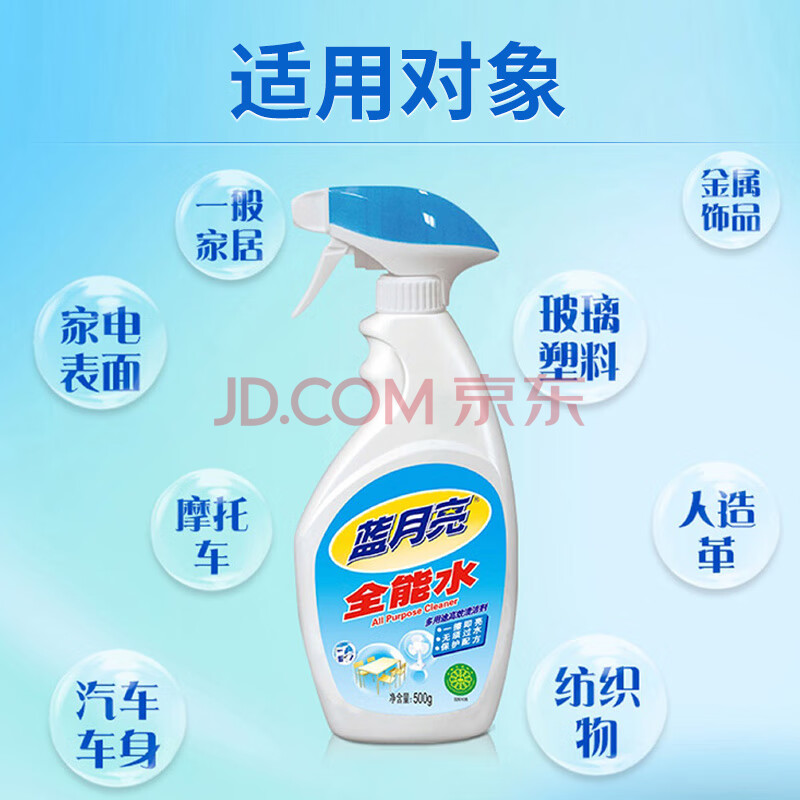 商品相册:蓝月亮 全能水500g/瓶 浴室地板厨房 家具家电玻璃金属饰品多功能清洁剂第1张/共8