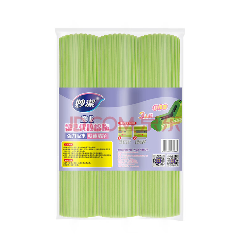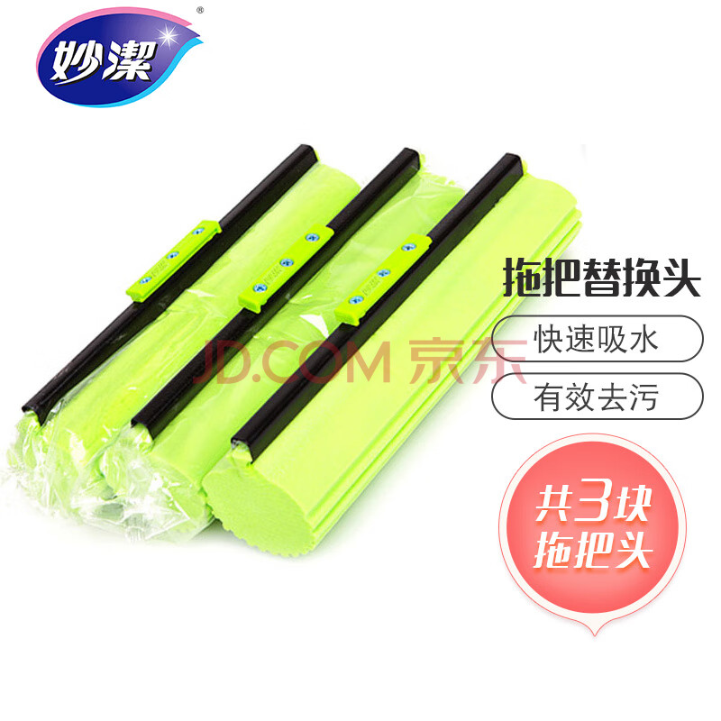 商品相册:妙洁胶棉拖把头27cm共3头滚轮式卡槽加强型替换装海绵第